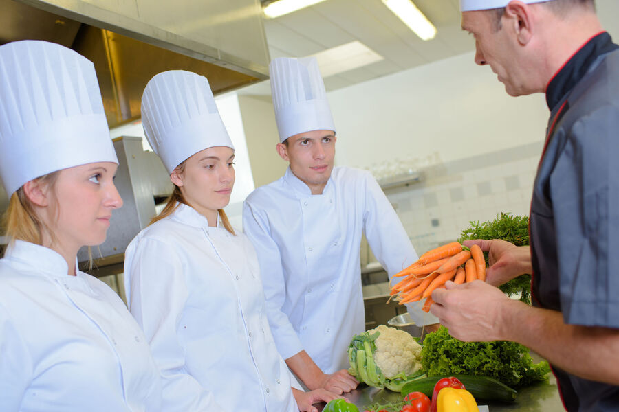 Culinary Arts students operate a contemporary sixty-seat full-service restaurant located within the school. They plan, prepare and serve a variety of traditional, ethnic, and contemporary menus as well as cater banquets, dinner meetings, and special events. Students develop artistic skills through ice carvings and special exhibits of pastillage, tallow, and aspic work. Local, state, and national competitions enrich the curriculum which includes: appetizers, soups and sauces, vegetables and salads, meat/poultry/seafood/shellfish, desserts, garnishing, catering, service, sanitation, and management. The program is nationally recognized and certified by the American Culinary Federation (ACF).